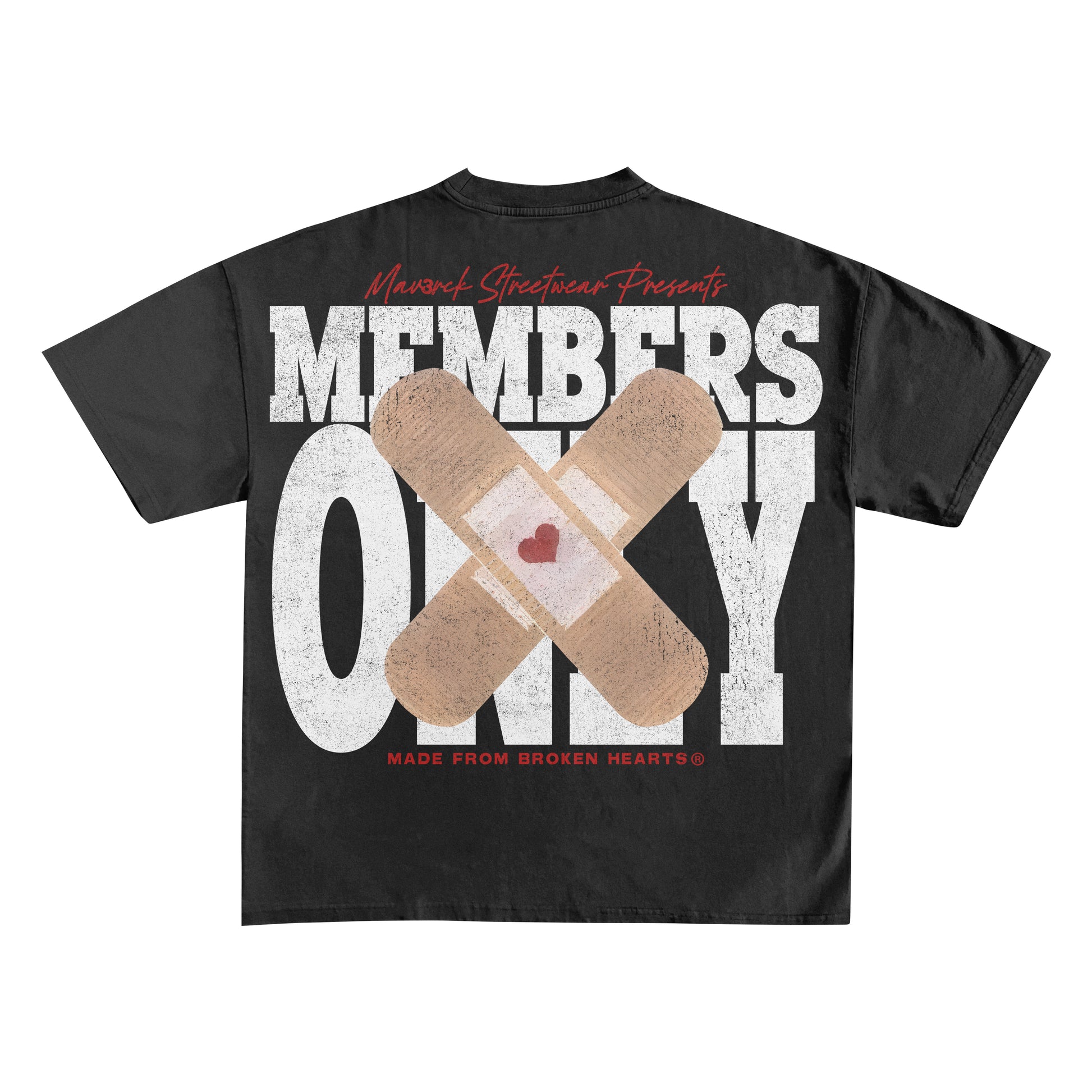 Join the club of those who wear their heart on their sleeve with the Members Only “Broken Hearts” Tee. This bold design features distressed white text and a unique bandage graphic with a red heart at the center, symbolizing resilience and exclusivity. Crafted from premium cotton for ultimate comfort, this washed black tee stands out with its streetwear edge and powerful message. Perfect for those who appreciate style with substance, this shirt is more than just fashion—it’s an emblem of strength.